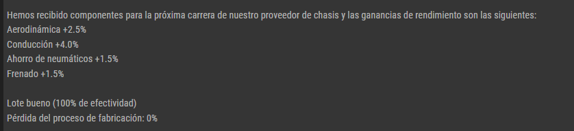 The development of my chassis says that I will gain 2% in braking and tyres, but the report tells me that I gain 1.5%. Why is that?