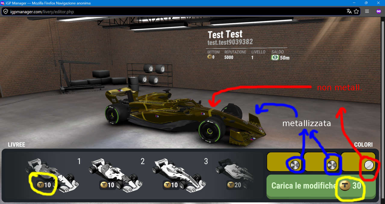 P.S. Inoltre, una livrea TUTTA metallizzata costa 40 token utilizzando il modello più economico, da 10, e poiché un nuovo account inizia con 30 token non può venir salvata, a meno che davvero non vengano richiesti i token.