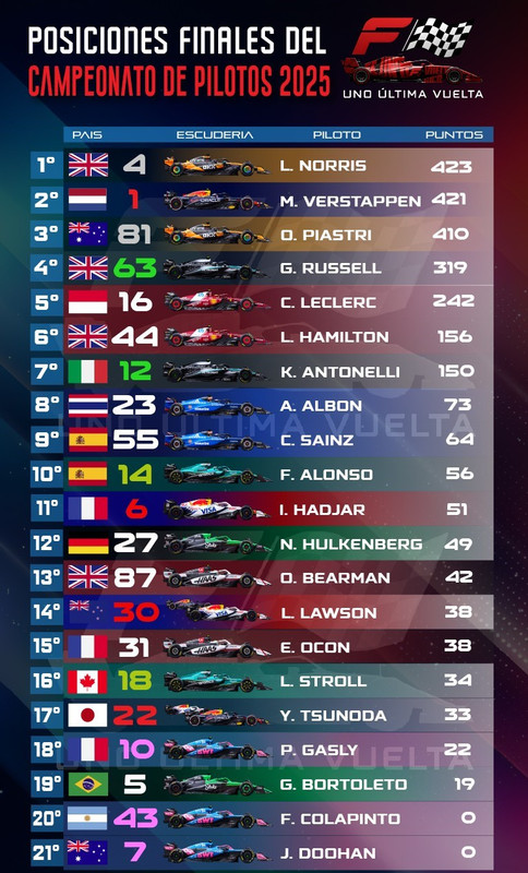 *Puntito extra para los más rápidos, consiguiendo un punto extra el que realice la vuelta más rápida dentro de los 10 primeros de la carrera, y en todas las categorías.