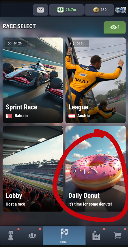 Some sort of reminder for the daily donut would be good. Like a red dot ot the “Race” card and on the “Daily Donut” card.