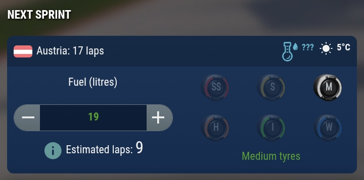 I just played 3 sprint races and I can change tyres and laps only. No refueling. So every race I did not finish because of a lack of fuel.