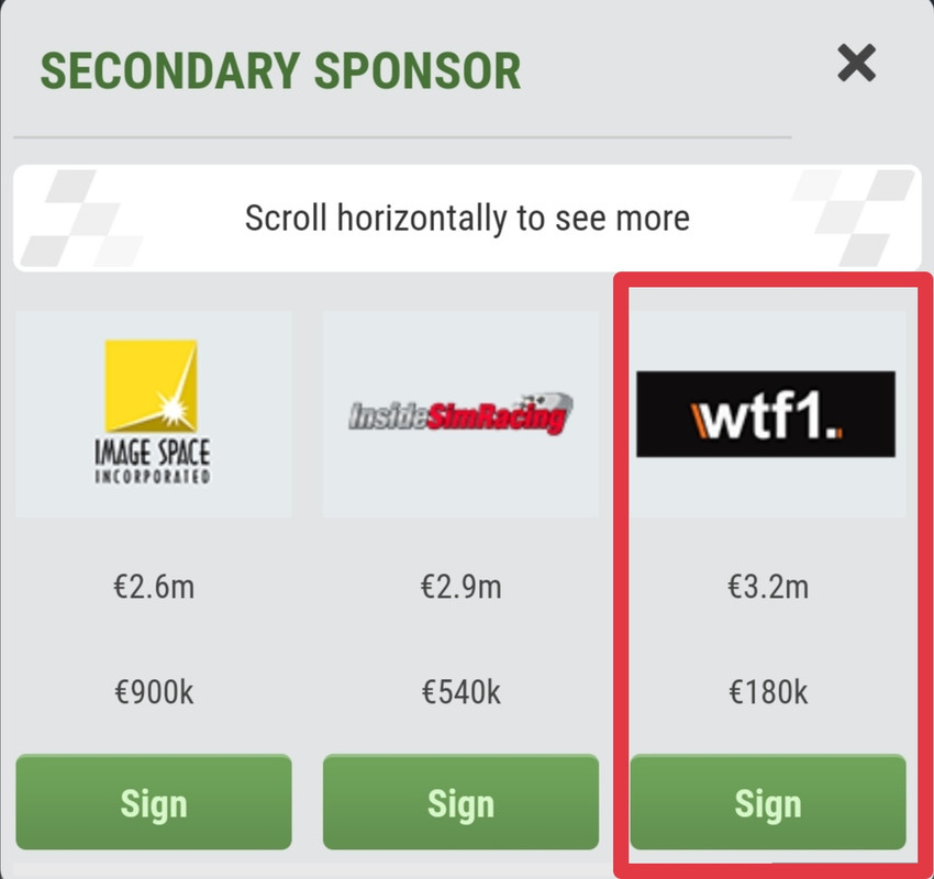 iracing.com as a primary sponsor and WTF1 +investments are the best choice to get money